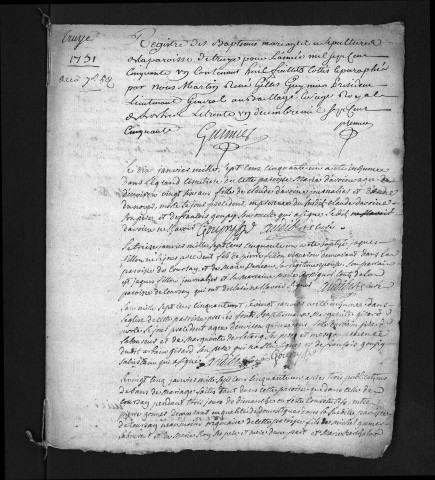 Collection du greffe. Baptêmes, mariages, sépultures, 1751