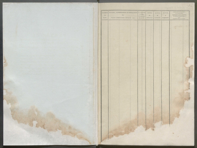 Les lacunes les plus importantes qu'il y a lieu de relever sont les suivantes : certains registres du bureau de St-Christophe (1791 à 1810) ; la plupart des registres de la série des « baux d'immeubles sous signatures privées » ouverte en 1871, sauf dans quatre bureaux (Château-Renault, Chinon, Loches et Tours) et encore parfois de façon épisodique ; la totalité des actes judiciaires (sous réserve de la remarque faite il y a un instant) d'Amboise, Château-Renault, Langeais et Preuilly ; les mutations par décès de l'Ile-Bouchard de 1791 à avril 1807 ; celles de Langeais et de Loches pour la même période ; toutes les tables et mutations par décès de Luynes ; quelques tables de Neuillé-Pont-Pierre[1] ; pour Neuvy-le-Roi (anciennement Neuvy-la-Loi), quelques tables, les actes sous signature privée de 1855 à 1858, les mutations par décès de 1810 à mai 1812 ; tous les registres de baux de Richelieu et les mutations par décès de 1791 à l'an VII ; pour le bureau de Tours, enfin, des pertes irréparables, à savoir : toutes les tables de testaments et dispositions éventuelles, des partages et copartageants, des contrats de mariage, des baux, plus encore celles des vendeurs et des acquéreurs, les mutations par décès de 1791 à mai 1807, les actes judiciaires de 1791 à messidor an VII.