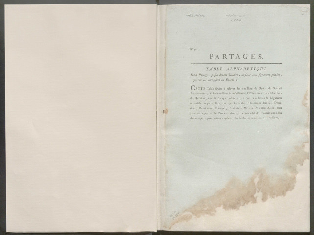En principe, les tables de renvoi indiquent, en face de chaque inscription, le numéro de volume auquel il faut se reporter ainsi que le folio, mais il n'en est pas toujours ainsi et, nous l'avons vu plus haut, l'Enregistrement a parfois attribué plusieurs fois le même numéro dans une même série de tables. C'est pourquoi, afin de gagner du temps aux chercheurs, il a paru utile, à la suite de sondages minutieux effectués dans plusieurs lettres d'une même table principale, d'indiquer à quelle(s) cote(s) du répertoire on devra se reporter si l'on consulte des tables de renvoi.