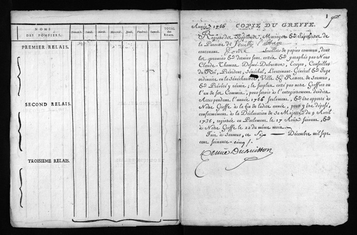 Baptêmes, mariages, sépultures, 1766