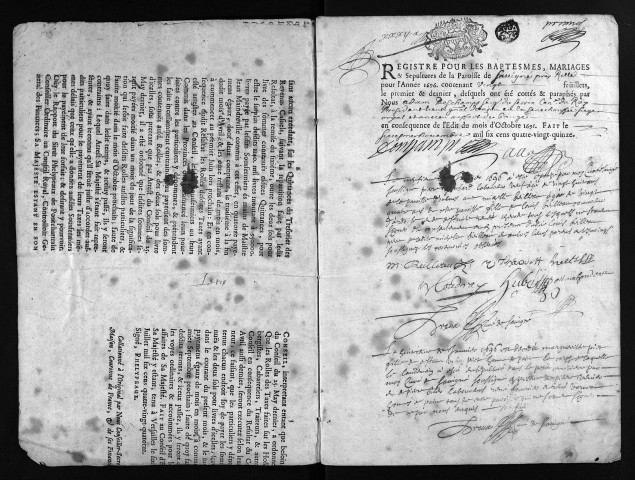 Collection du greffe. Baptêmes, mariages, sépultures, 1696-1697