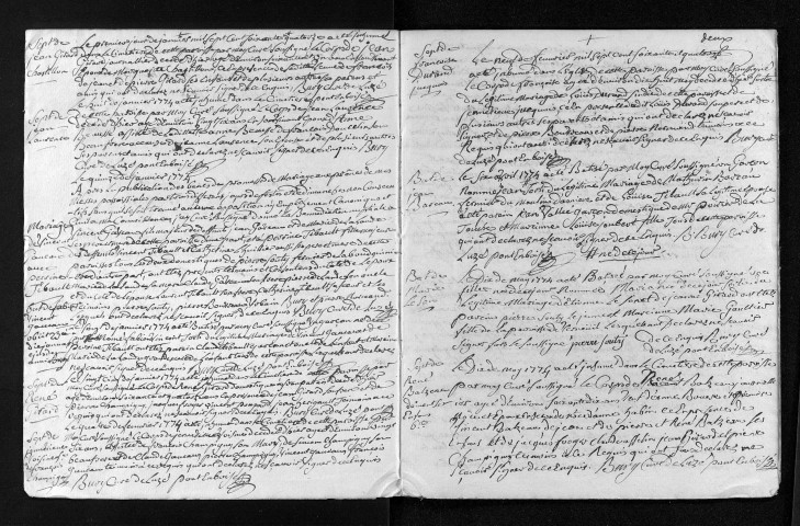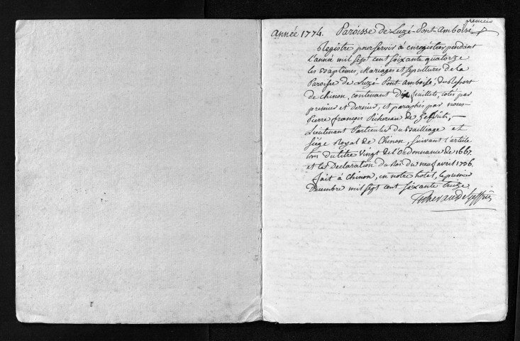 Collection du greffe. Baptêmes, mariages, sépultures, 1774