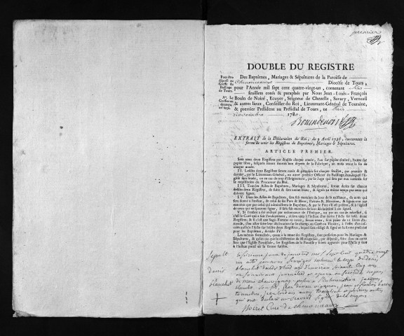 Collection du greffe. Baptêmes, mariages, sépultures, 1781