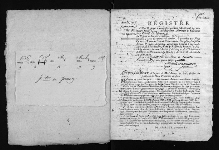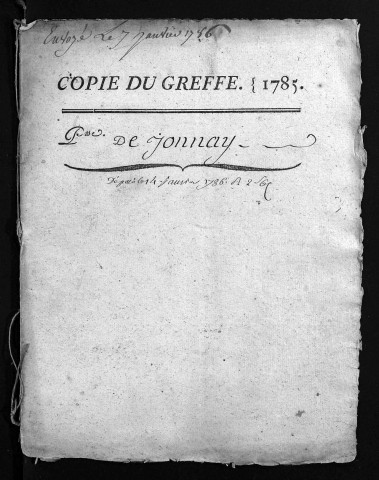 Collection du greffe. Baptêmes, mariages, sépultures, 1785