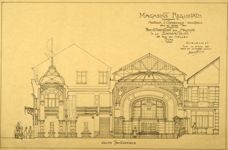 Transformation des magasins. Travaux commandités par les Magasins régionaux, administrés par M. Gerbehaye, de Paris. A partir de 1926, le magasin se nomme Palais des Marchands et plus tard Palafsold.