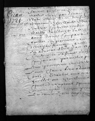 Collection du greffe. Baptêmes, mariages, sépultures, 1725