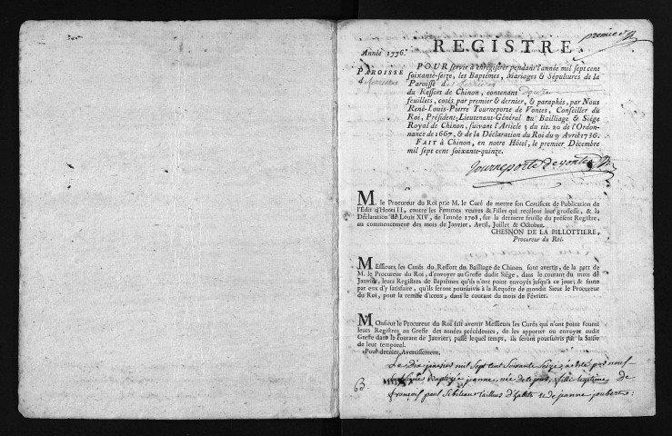 Collection du greffe. Baptêmes, mariages, sépultures, 1776