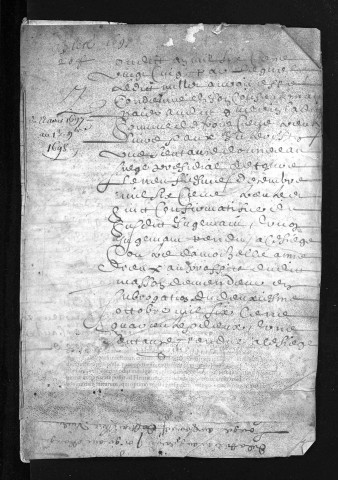 Collection du greffe. Baptêmes, mariages, sépultures, 1697-1698 - L'année 1696 est lacunaire dans cette collection