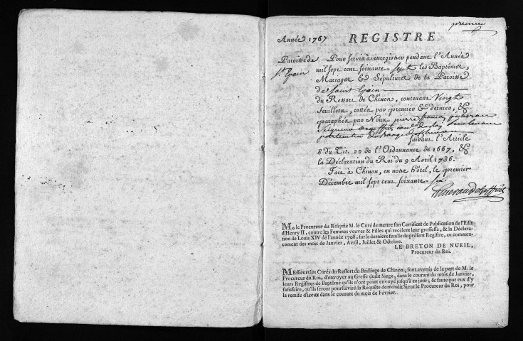 Baptêmes, mariages, sépultures, 1767