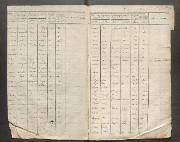 Toujours dans le même domaine, on notera que les registres ont souvent fait l'objet d'une nouvelle numérotation de la part de l'administration d'origine, vers 1810 et en 1825, de telle sorte que dans une même série de tables, on peut avoir plusieurs fois le même numéro, mais cela est assez irrégulier d'un bureau à l'autre. Par contre, ce qui est quasiment constant, c'est la numérotation à partir de 1 des registres d'actes sous signature privée en l'an VII, ou postérieurement s'il s'agit de bureaux rétablis en 1810.