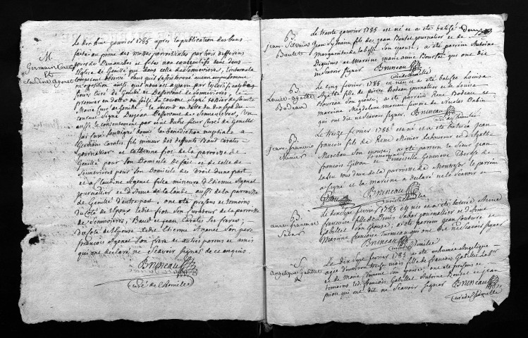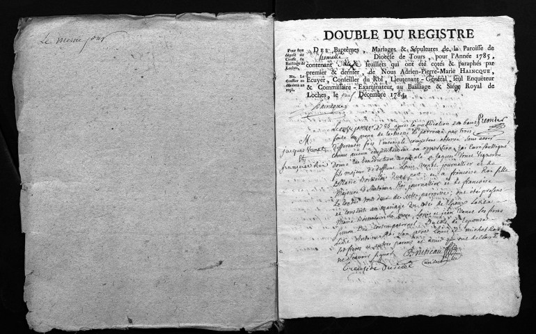 Collection du greffe. Baptêmes, mariages, sépultures, 1785