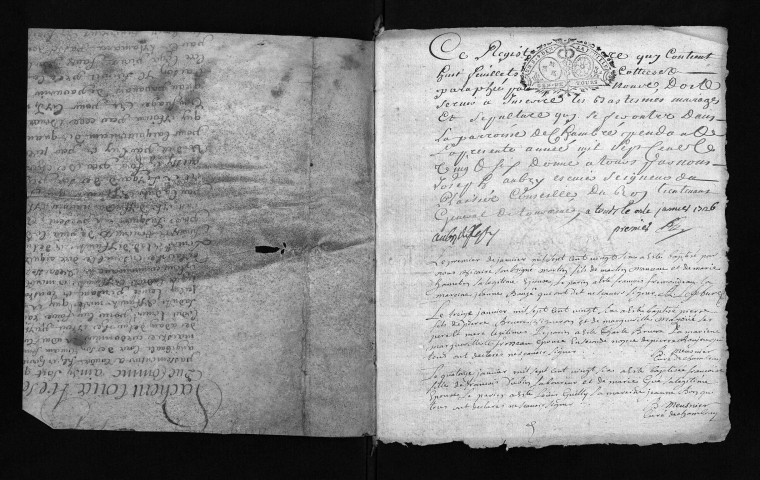 Collection du greffe. Baptêmes, mariages, sépultures, 1726