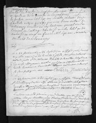 Collection du greffe. Baptêmes, mariages, sépultures, 1760 - L'année 1759 est lacunaire dans cette collection