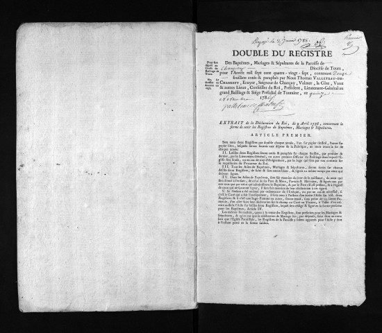 Collection du greffe. Baptêmes, mariages, sépultures, 1787