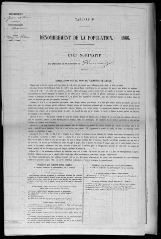 De nombreuses listes nominatives de l'année 1866 sont manquantes, pour l'arrondissement de Loches, dans la collection de la préfecture (6M).