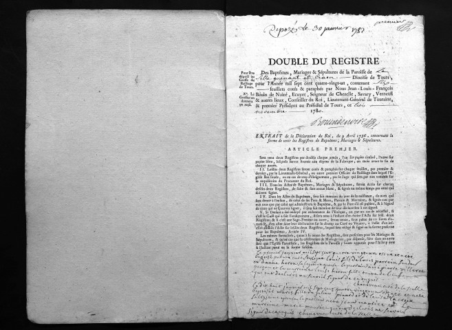 Collection du greffe. Baptêmes, mariages, sépultures, 1781