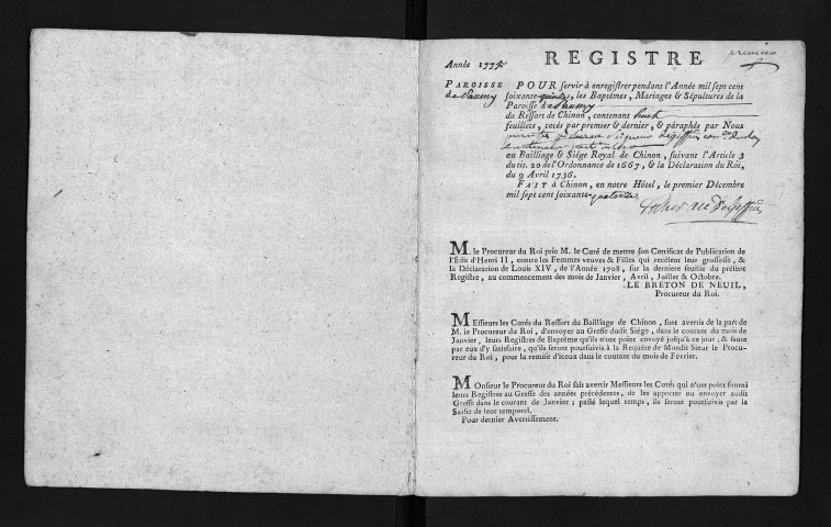Collection du greffe. Baptêmes, mariages, sépultures, 1775