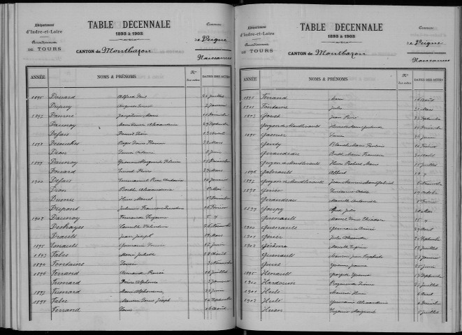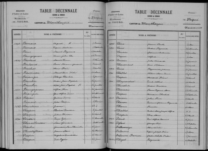 Tables décennales de l'état civil numérisées