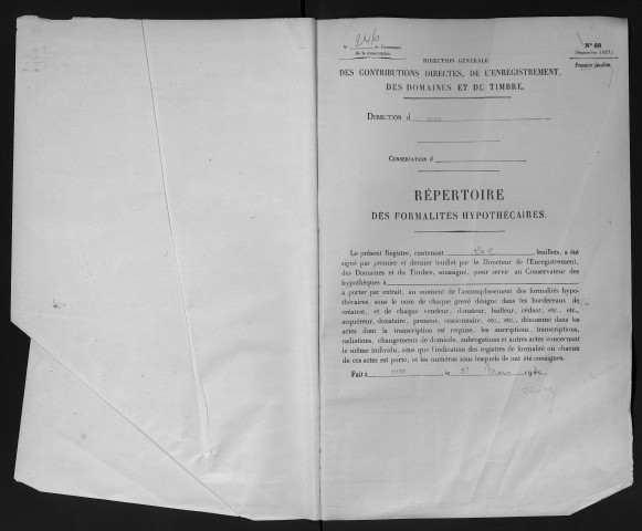 Suite au décret du 21 juillet 1936 sur l'Enregistrement et les Domaines, une instruction du directeur général de l'Enregistrement, des Domaines et du Timbre du 14 octobre 1936 prescrit la remise aux Archives départementales des registres clos depuis 100 ans. Cette instruction est reprise dans la circulaire de la direction des Archives de France du 12 décembre 1936. Toutefois, une circulaire du 18 mars 1937 émanant de la direction de l'Enregistrement contredit la précédente en autorisant les conservateurs des hypothèques à conserver tous les documents qu'ils jugent indispensables à la bonne marche du service (reprise par la circulaire de la direction des Archives de France du 18 mai 1937). Une instruction de la direction générale des Impôts de juin 1950 préconise la conservation définitive de nombreux documents hypothécaires au sein des services fiscaux.
