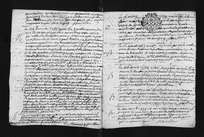 Baptêmes, mariages, sépultures, 1737
