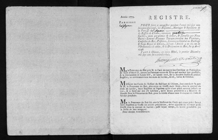 Baptêmes, mariages, sépultures, 1779