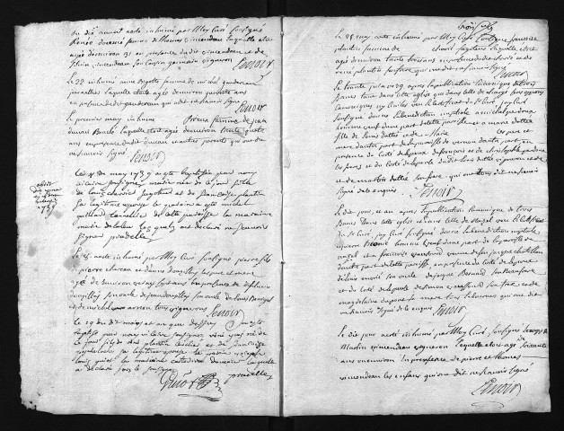 Collection du greffe. Baptêmes, mariages, sépultures, 1739