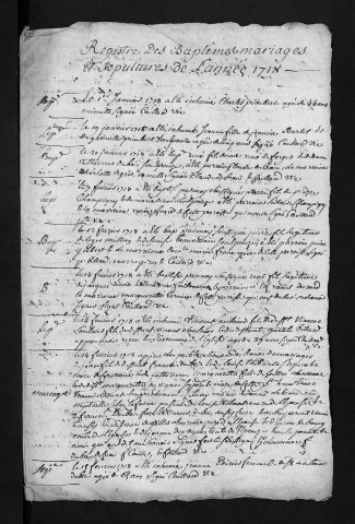 Baptêmes, mariages, sépultures, 1718