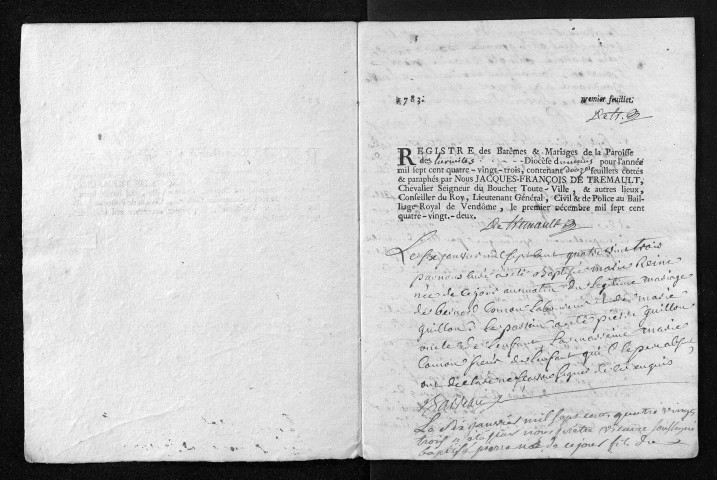 Collection du greffe. Baptêmes, mariages, sépultures, 1783
