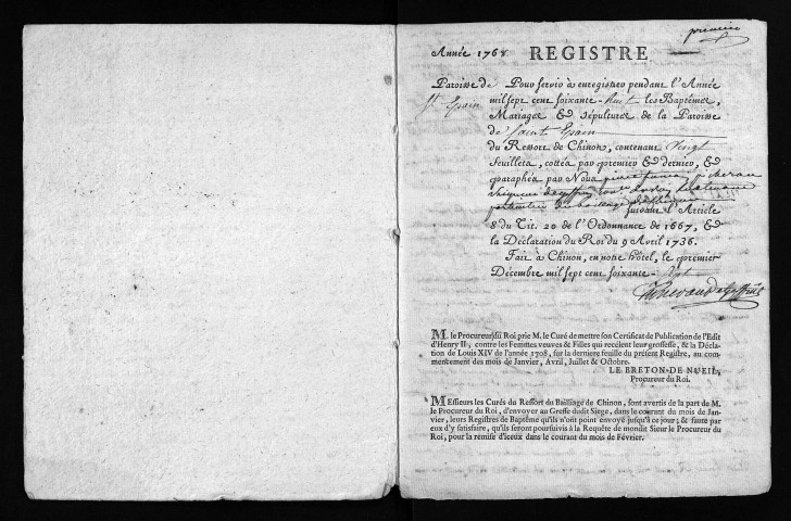 Baptêmes, mariages, sépultures, 1768