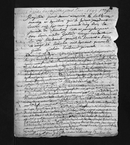 Collection du greffe. Baptêmes, mariages, sépultures, 1745