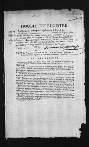 Collection du greffe. Baptêmes, mariages, sépultures, 1790
