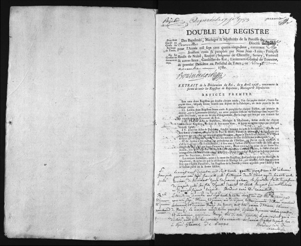 Collection du greffe. Baptêmes, mariages, sépultures, 1781-1782