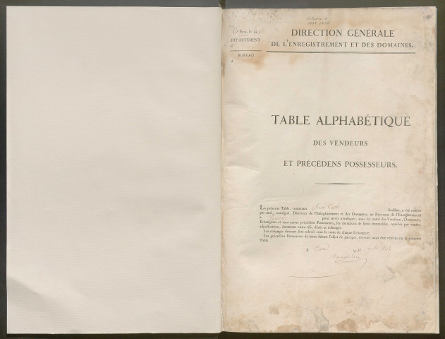 Les dates qui ont été portées dans le répertoire pour les registres proprement dits sont les dates d'enregistrement des actes ou des déclarations (pour les mutations par décès) ; en effet, dans les différentes tables, c'est cette mention qu'il faudra prendre en considération, dans la colonne appropriée, pour retrouver rapidement ce que l'on cherche dans les registres correspondants.
