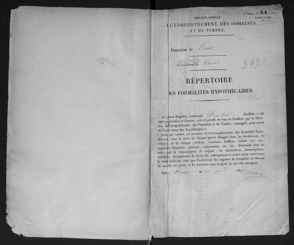 (4 Q 5/1016-1018). Puis commence la longue série des inscriptions numérotée à partir du numéro 1. Notons que le premier volume numéroté 1 est en déficit au moment de la rédaction du répertoire de la sous-série 4 Q. Il devait couvrir la période du 3 nivôse an IV au 26 brumaire an VII, comme l'indique l'inventaire des registres de la conservation de Tours conservé sous la cote 4 Q 5/1.