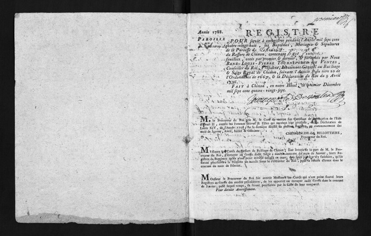 Baptêmes, mariages, sépultures, 1788
