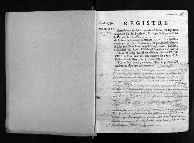 Collection du greffe. Baptêmes, mariages, sépultures, 1756