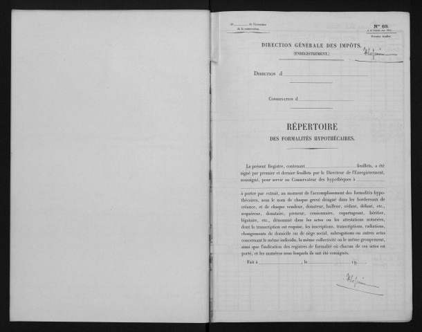 (4 Q 5/1016-1018). Puis commence la longue série des inscriptions numérotée à partir du numéro 1. Notons que le premier volume numéroté 1 est en déficit au moment de la rédaction du répertoire de la sous-série 4 Q. Il devait couvrir la période du 3 nivôse an IV au 26 brumaire an VII, comme l'indique l'inventaire des registres de la conservation de Tours conservé sous la cote 4 Q 5/1.