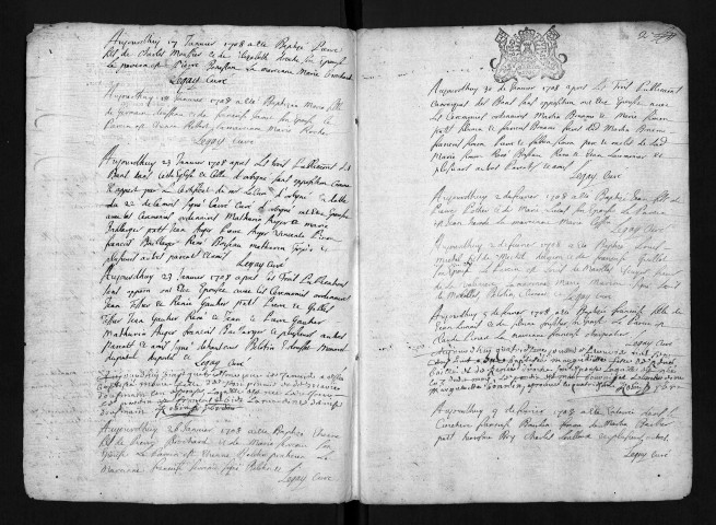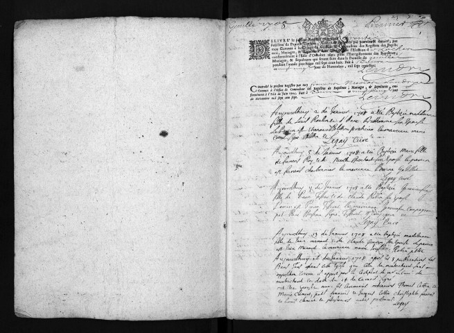 Collection du greffe. Baptêmes, mariages, sépultures, 1708