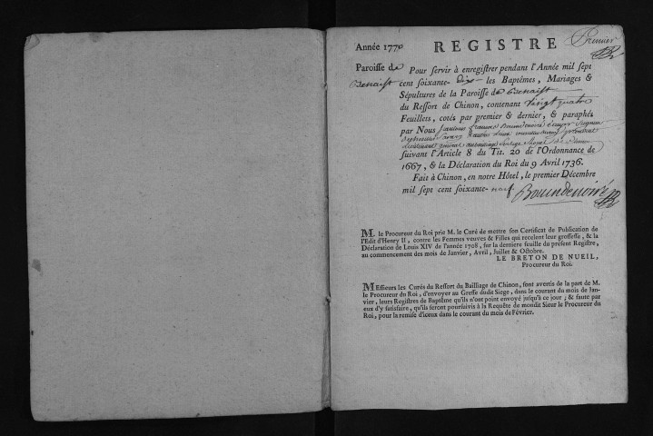 Collection du greffe. Baptêmes, mariages, sépultures, 1770