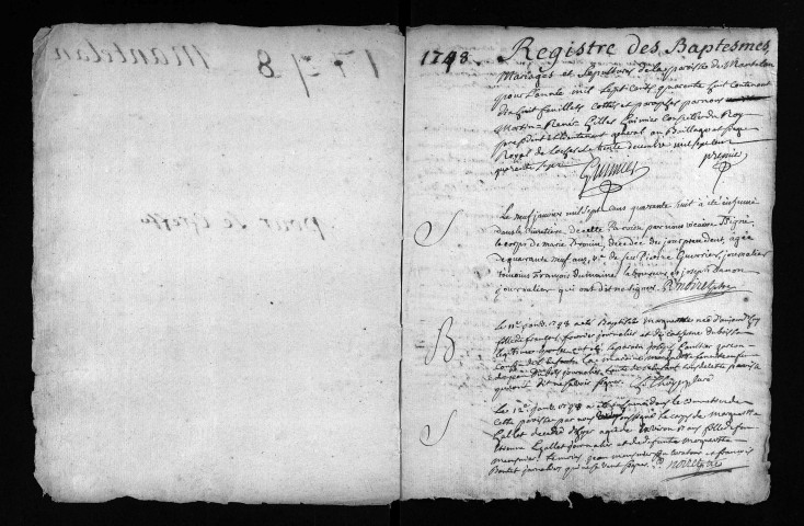 Collection du greffe. Baptêmes, mariages, sépultures, 1748