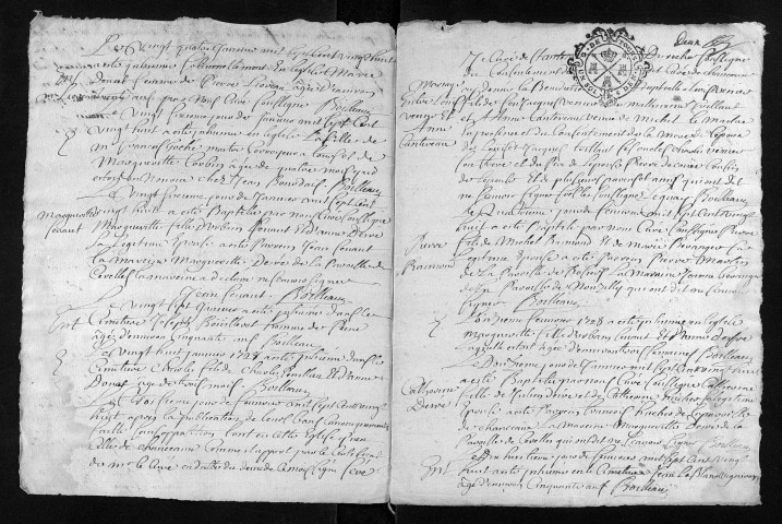 Collection du greffe. Baptêmes, mariages, sépultures, 1728