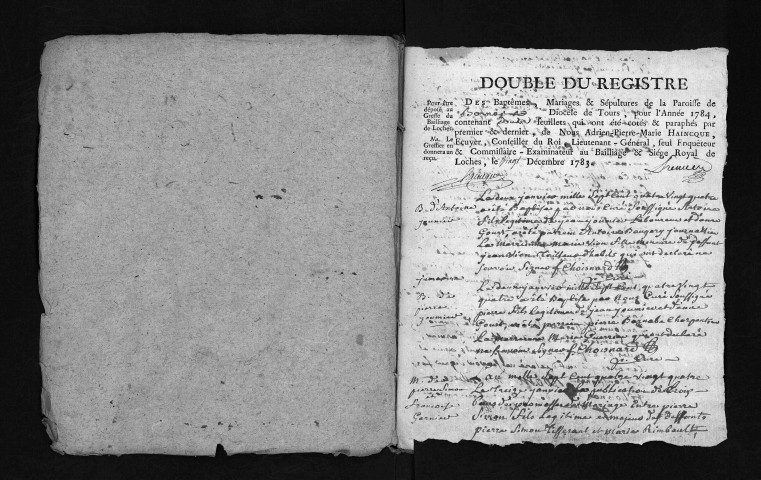 Collection du greffe. Baptêmes, mariages, sépultures, 1784