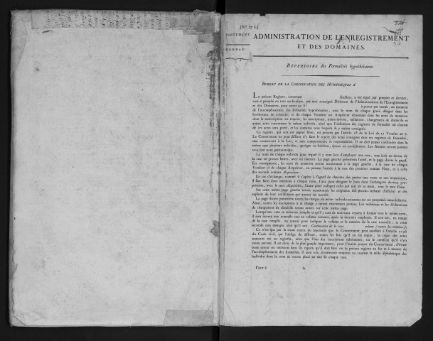 Un office de conservateur des hypothèques est créé dans chaque généralité. Les conservateurs doivent ouvrir un greffe afin d'inscrire les titres de propriété, les hypothèques prises sur ces titres, les saisies et oppositions.
