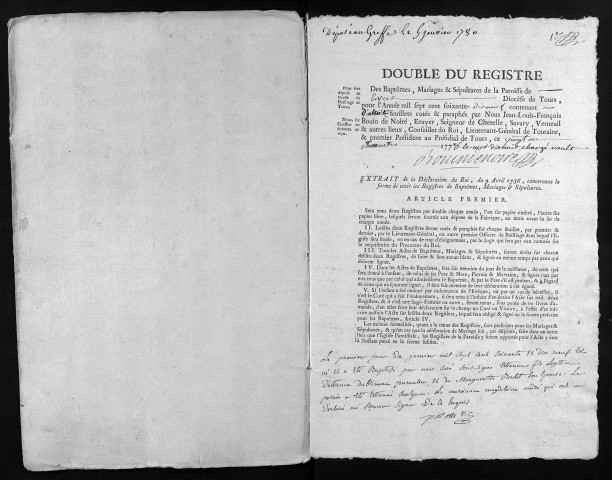 Collection du greffe. Baptêmes, mariages, sépultures, 1779