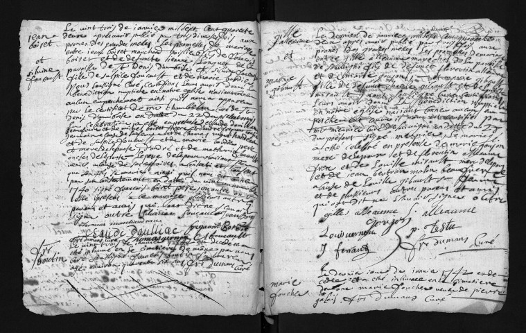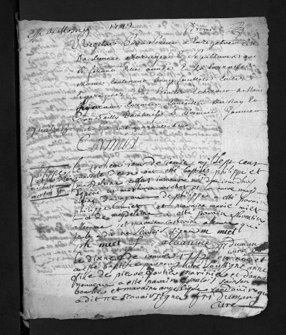 Collection du greffe. Baptêmes, mariages, sépultures, 1742-1743