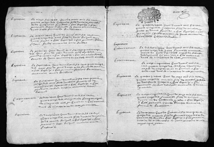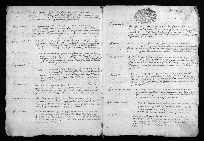 Collection du greffe. Baptêmes, mariages, sépultures, 1690