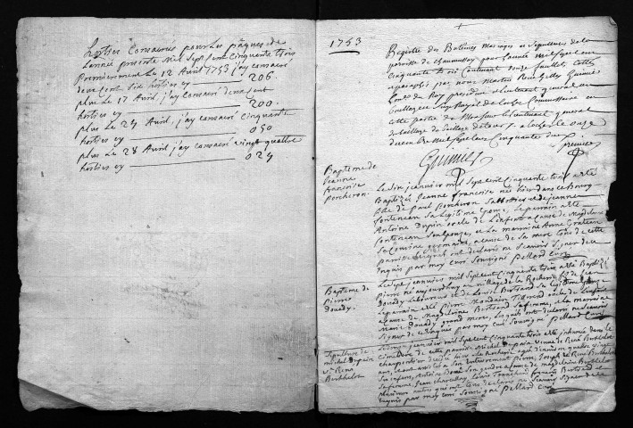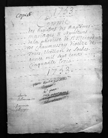 Collection du greffe. Baptêmes, mariages, sépultures, 1753