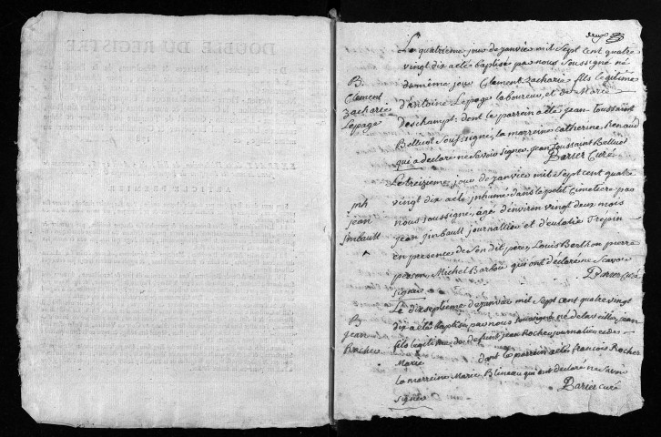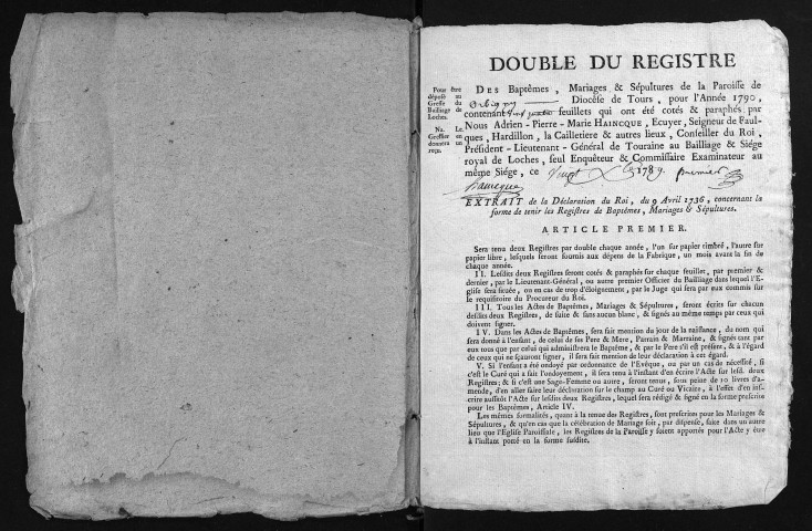 Collection du greffe. Baptêmes, mariages, sépultures, 1790