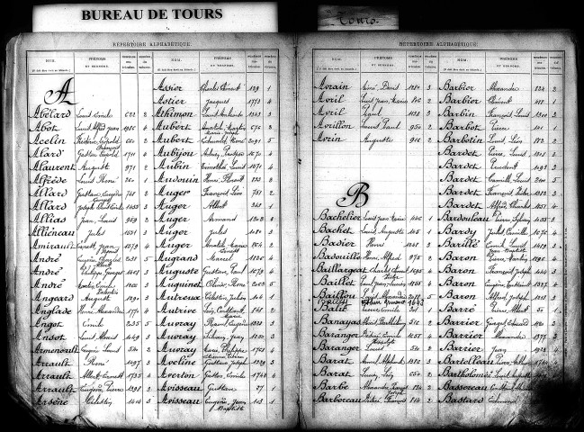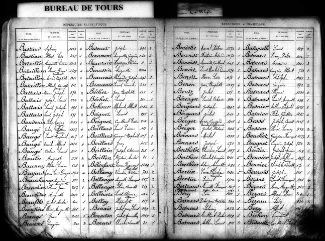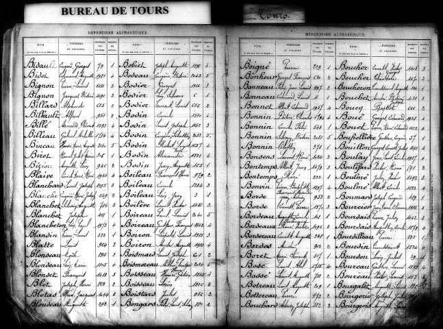Bureau de Tours (les registres matricules correspondant sont conservés en Indre-et-Loire) :
