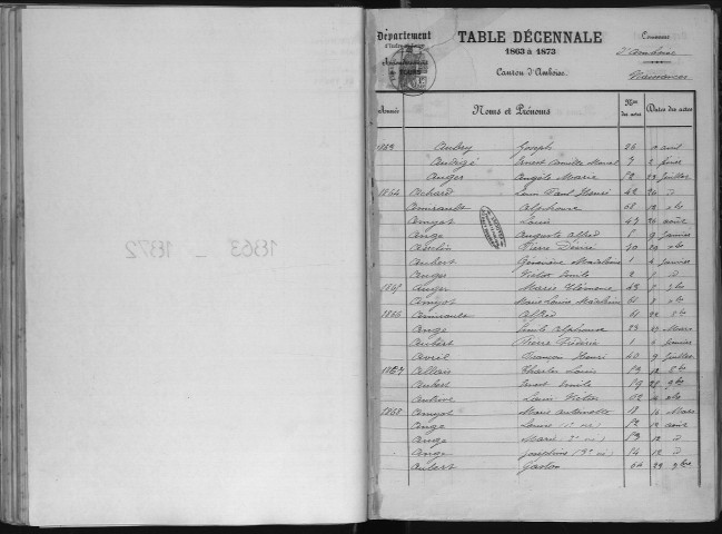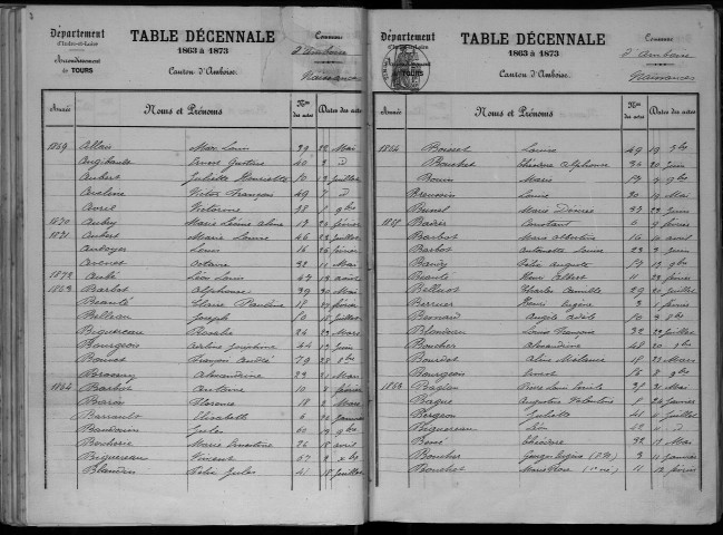 Tables décennales de l'état civil numérisées